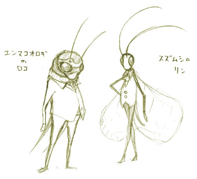 “エンマコオロギのロコ”さんと“スズムシのリン”さん。